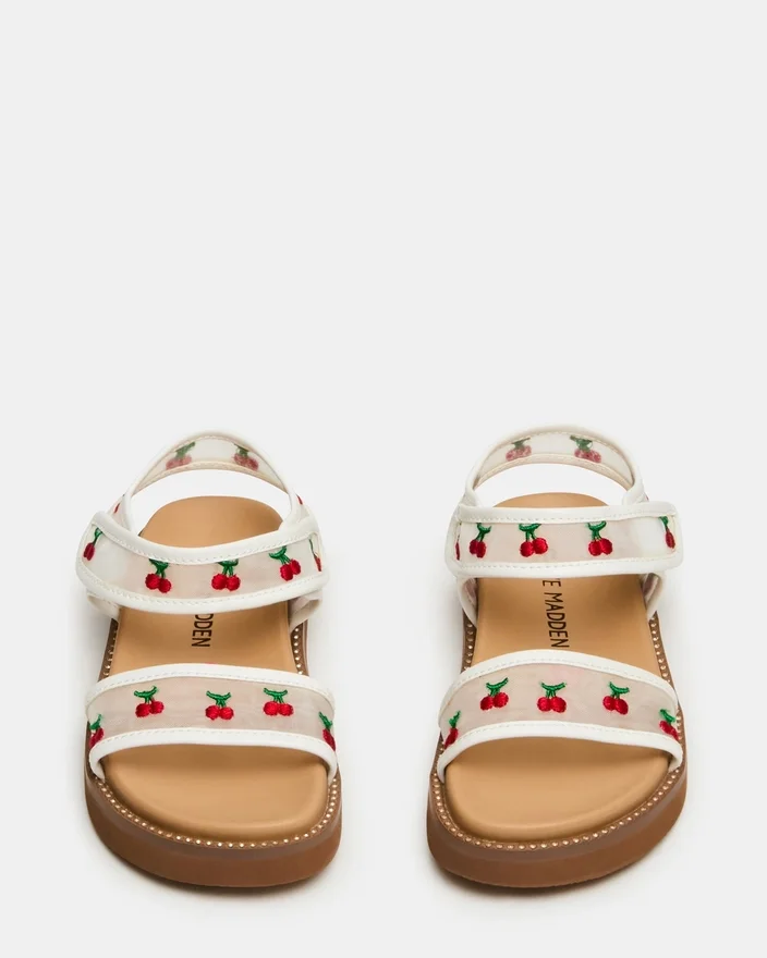 Vi presenterer Lyla White for småbarn – en leken sandal med fotbed designet for små oppdagelsesreisende. Med sjarmerende broderte kirsebærdetaljer og en pustende mesh-konstruksjon holder denne sandalen små føtter komfortable hele dagen. De justerbare borrelåsstroppene sikrer en sikker, tilpassbar passform som vokser med barnet ditt. Perfekt for eventyr i varmt vær, fra dager i parken til utflukter i fritiden.