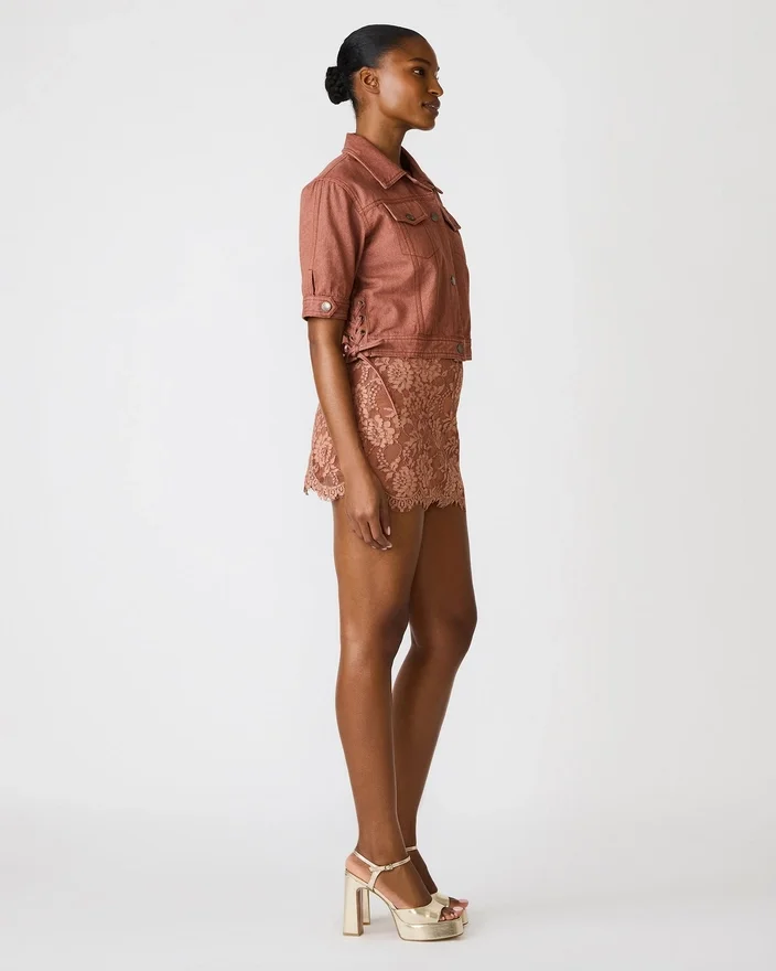 Blu Jacket Rust er en denimjakke med knapper, laget med en klassisk krage og korte ermer for lag-på-lag-stilen i varmt vær. Den strukturerte silhuetten og den tidløse denimkonstruksjonen gjør den til et uunnværlig plagg for å skape uanstrengte, stilige antrekk. Perfekt for overgangssesongene eller som et lett lag over dine favoritt-T-skjorter og topper.