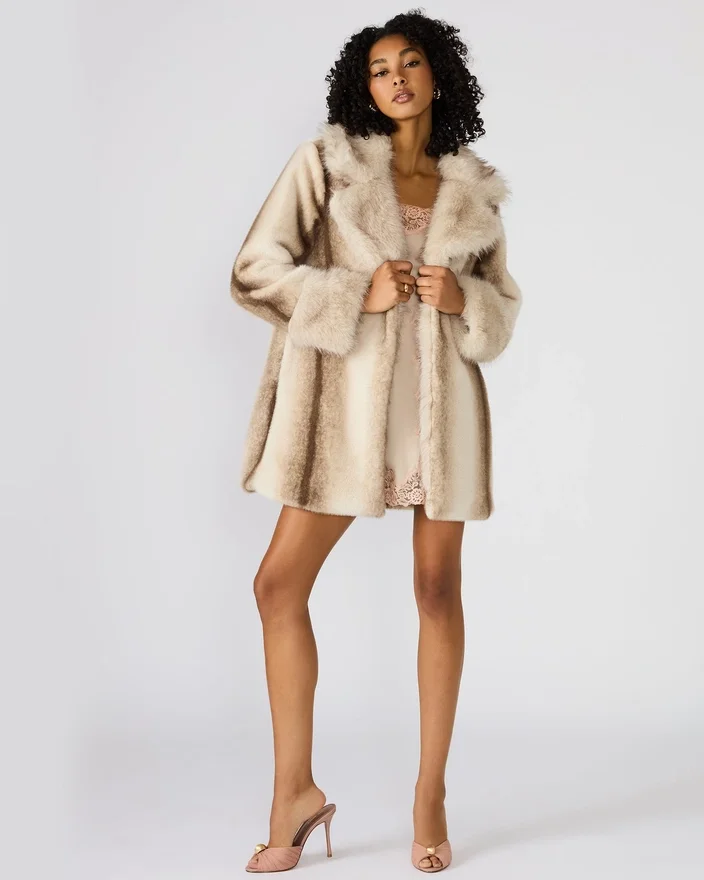 Carmelina Coat Multi har et design med lange ermer laget av luksuriøst fuskepels, som gir både varme og stil. Det flerfargede mønsteret gir en særegen, moteriktig kant som er ideell for å løfte enhver vintergarderobe. Denne jakken kombinerer myk komfort med dyktig skreddersøm, noe som gjør den til et sofistikert valg for lag-på-lag-stiler i kaldt vær.