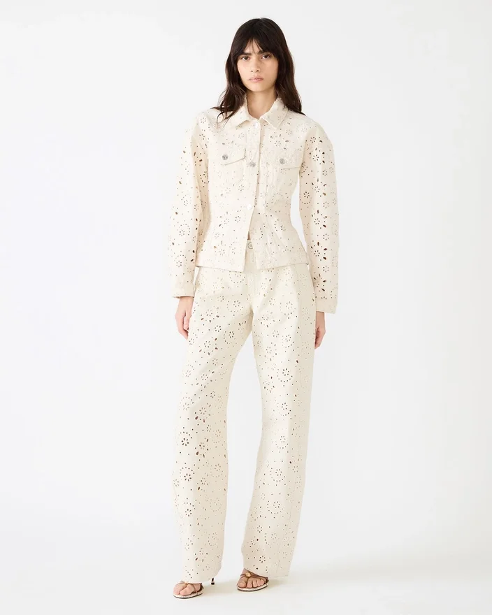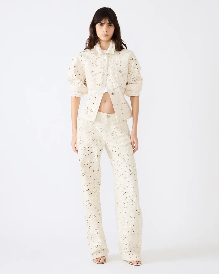 Henrietta-jakken Sea Mist kombinerer tidløst denimhåndverk med moderne designdetaljer. Denne langermete jakken med knapper har et raffinert hullmønster over hele jakken, noe som gir den klassiske silhuetten visuell interesse og tekstur. Jakken har en myk, allsidig farge som passer perfekt til hverdagsgarderoben din. Jakken er laget av kvalitetsdenim og tilbyr holdbarhet og struktur samtidig som den har en behagelig passform. Henrietta er perfekt for lag-på-lag-stilen gjennom alle årstider og går sømløst fra antrekk i fritidstil til elegante antrekk, noe som gjør den til et uunnværlig plagg i enhver stilbevisst garderobe.