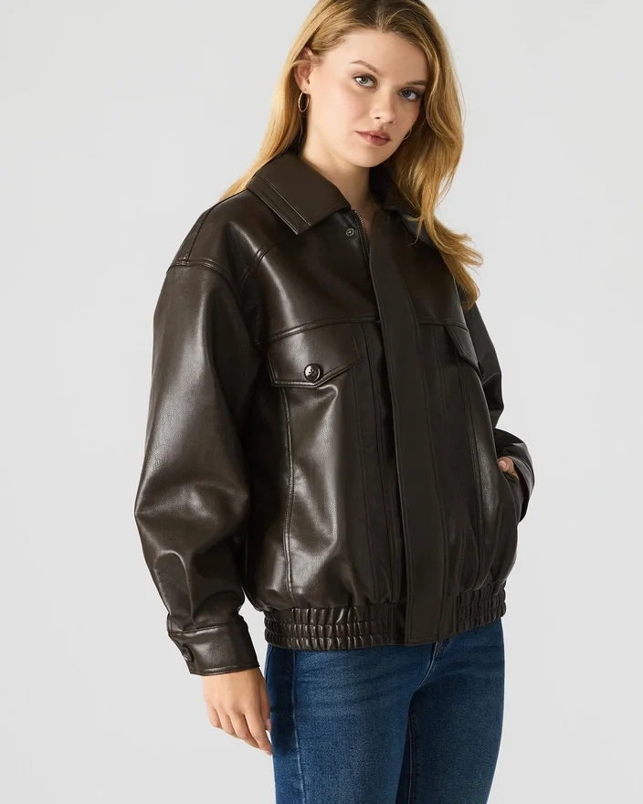 Henson-jakken Coco er laget av elegant imitert skinn, med et langermet design som kombinerer stil med praktisk funksjonalitet. Den solide glidelåslukningen sikrer at jakken sitter godt, mens den klassiske kragen gir en strukturert, elegant silhuett. Denne jakken er et allsidig lag-på-lag-plagg som løfter ethvert antrekk med et profesjonelt preg av moderne kant.