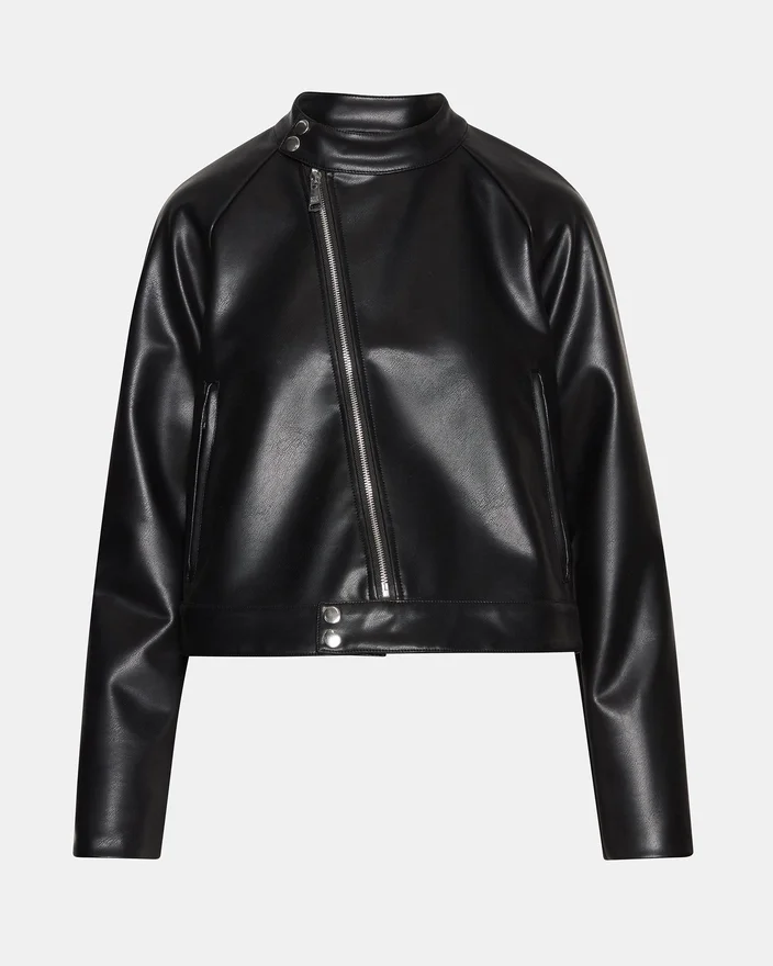 Jett-jakken i svart er en raffinert langermet jakke i imitert skinn, designet med en sikker glidelåslukking for en strømlinjeformet silhuett. Det høykvalitetsmaterialet gir utseendet av ekte skinn, samtidig som det sikrer enkel vedlikehold og holdbarhet. Denne jakken er ideell for lag-på-lag-stilen og gir et sofistikert preg til ethvert antrekk, med en balanse mellom moderne stil og funksjonelt design.