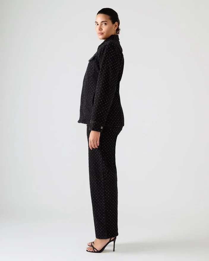 Parc Crystal-jakken i svart er en dyktig utformet langermet denimjakke med knappestolpe foran og klassisk krage. Denne jakken er designet for både stil og praktisk bruk, og har en strukturert passform som gir flere muligheter for lag-på-lag-stiler samtidig som den er slitesterk. Det tidløse designet gjør den til et allsidig tilskudd til enhver garderobe, perfekt for å løfte antrekk fra fritiden med et raffinert preg.