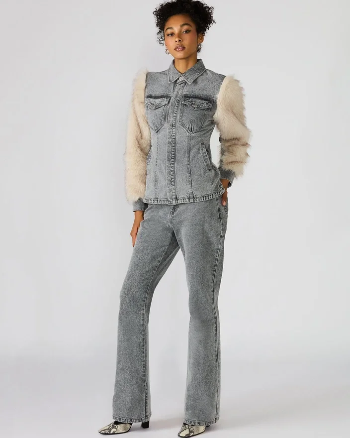 Parker Jacket Fog kombinerer robust denim med luksuriøse langermete ermer i imitert pels for en sofistikert vri på klassisk yttertøy. Dette designet med knapper gir varme og stil, noe som gjør det til et allsidig valg for kjøligere dager. Den skreddersydde passformen og de førsteklasses materialene gir både komfort og et elegant utseende, perfekt for å løfte sesongens garderobe.