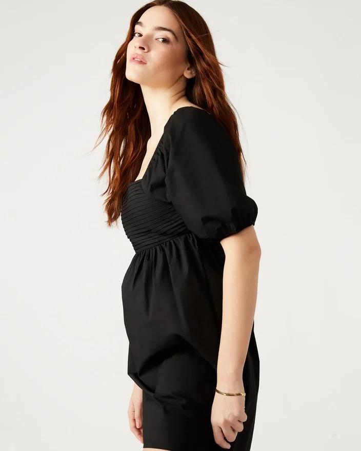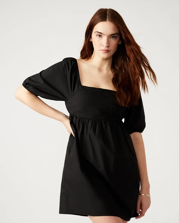 Inara-kjolen har en feminin og elegant stil. Med korte puffermmer, volanger og fløyer, samt en flatterende firkantet utringning, vil denne minikjolen få deg til å skille deg ut ved enhver anledning. Oppgrader garderoben din med denne uunnværlige kjolen.