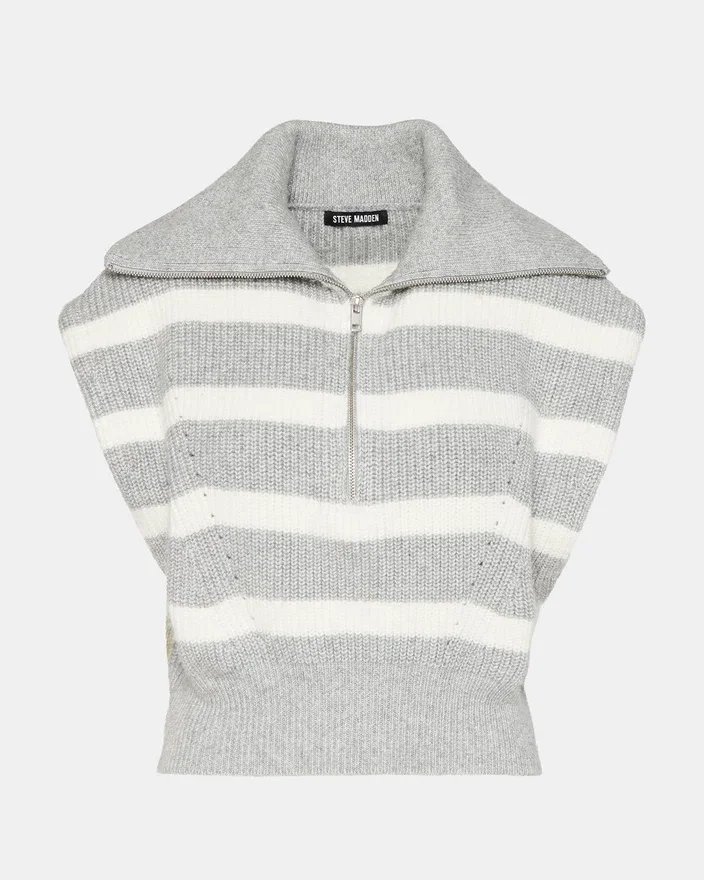 Hold stilen med Easton-genseren. Den er uten ermer, har hette, stripemønster og bred krage, og tilbyr både komfort og mote. Halvglidelås med metallknapper gir et praktisk preg, mens den avslappede passformen garanterer et flatterende utseende. Perfekt for dager på farten.