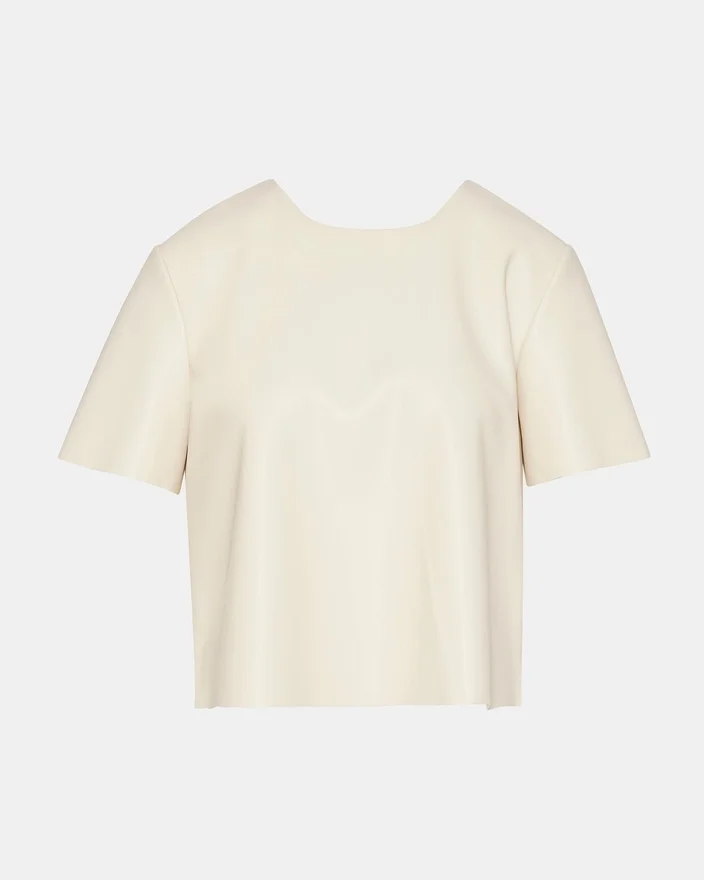 Vi presenterer vår luksuriøse Ezra Top. Løft stilen din med denne kortærmede T-skjorten i imitert skinn. Glidelåsen i metall gir et sofistikert preg til dette elegante plagget.