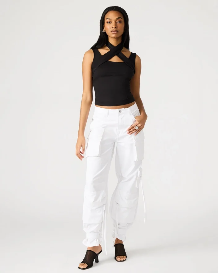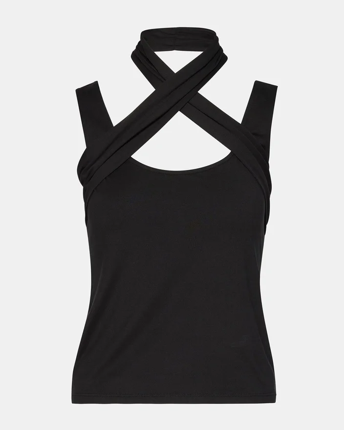 Vi presenterer Percy Top, en tank-top med et unikt kryssdesign. Denne toppen har en trendy stil med sitt innovative design, perfekt for å gjøre et inntrykk. Laget av materialer av høy kvalitet for en behagelig passform.