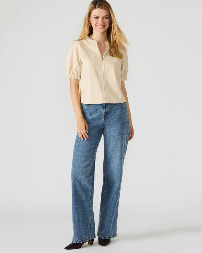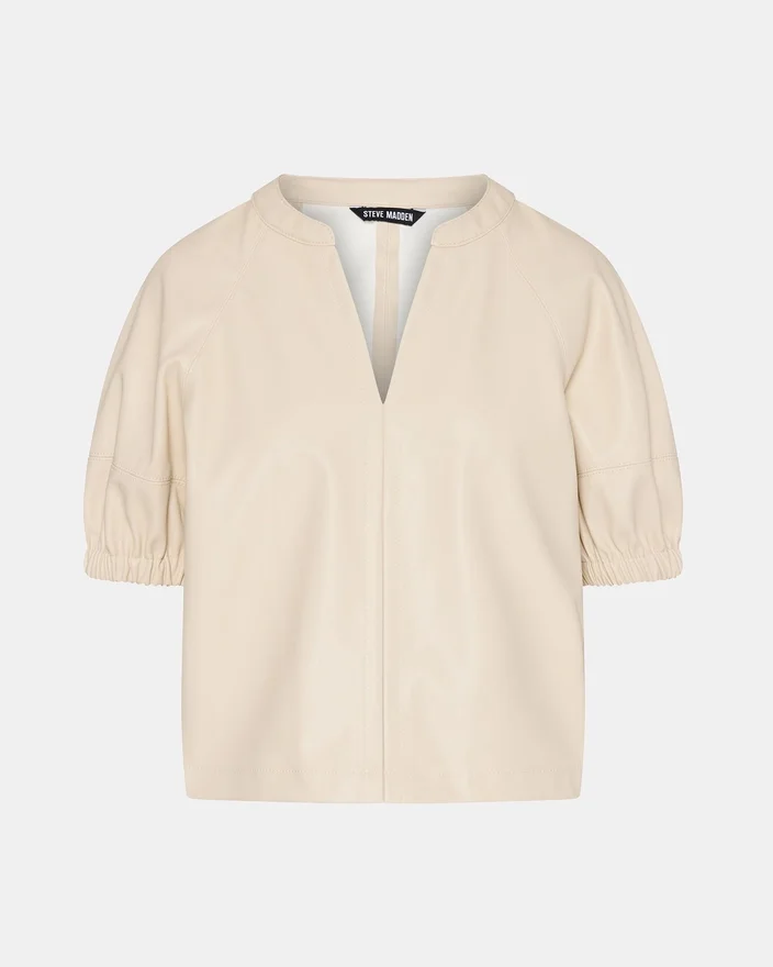 Oppgrader garderoben din med Roxanne-toppen, med korte puffermmer laget av luksuriøst imitert skinn. Dette profesjonelt designede plagget kombinerer en edgy tekstur med en flatterende silhuett, perfekt for å gjøre et sofistikert inntrykk i enhver setting.