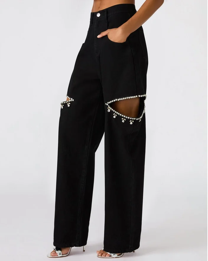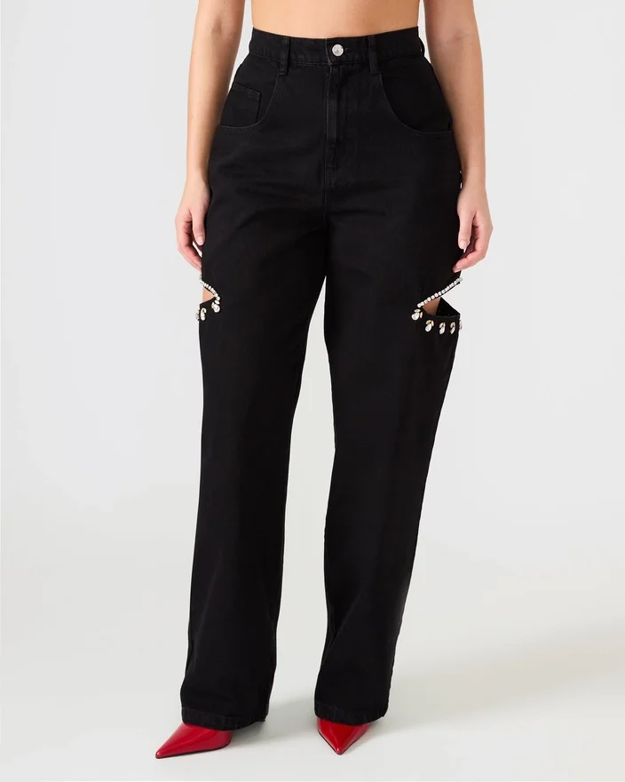Ayla Jean Black byr på tidløs stil med et moderne preg. Disse jeansene har en flatterende, rett benform og er utsmykket med slisser med rhinestones som gir det klassiske designet en subtil glamour. De lukkes med en pålitelig knapp og glidelås, noe som gir både sikkerhet og brukervennlighet. Funksjonelle lommer foran og bak gir praktisk oppbevaringsplass uten å gå på bekostning av den elegante estetikken.