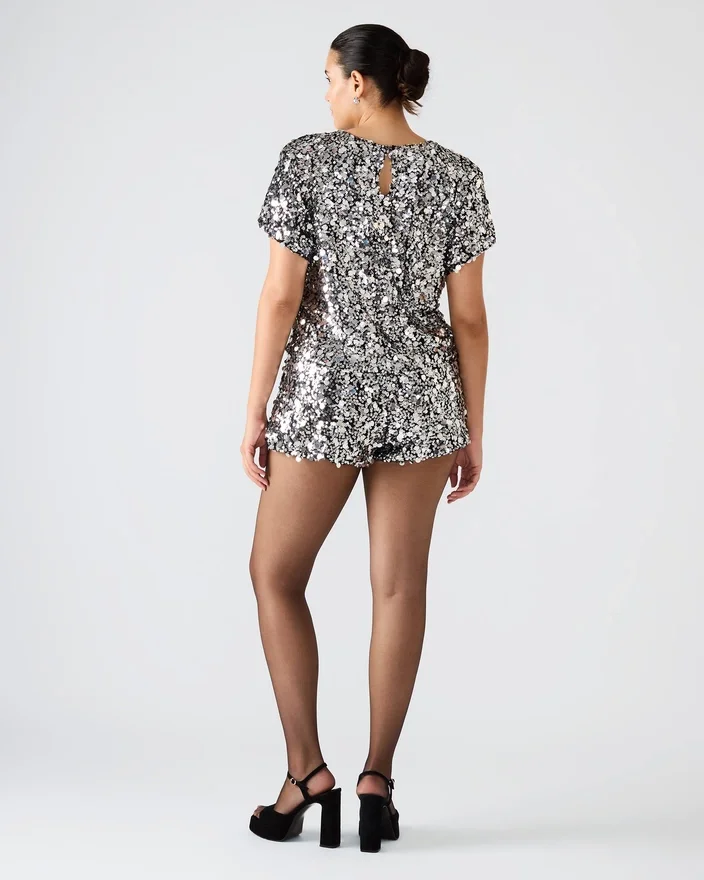 Løft looken din med Celestine Short Silver, med paljettpynt som gir en subtil glans og raffinement. Disse shortsene med elastisk linning er enkle å ta på, samtidig som de har et skreddersydd utseende, og de har praktiske lommer foran. De er designet som en del av et matchende sett og gir allsidige stylingsmuligheter for både anledninger i fritiden og festlige anledninger.