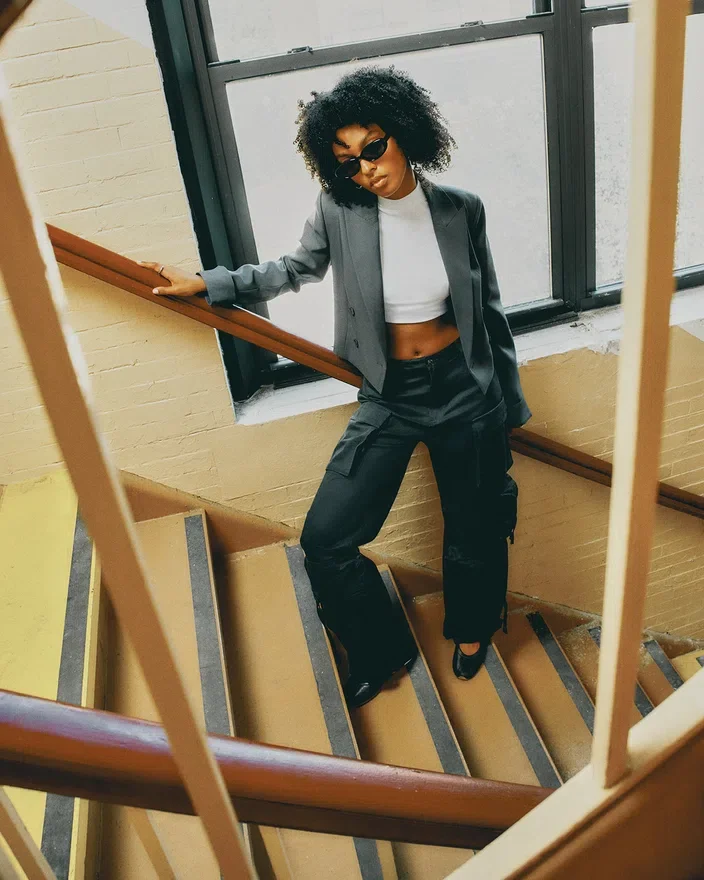 - Kiana er 175 cm høy og har på seg størrelse Small