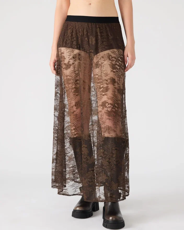 Oppgrader garderoben din med Gisela-skjørtet, et maxi-skjørt i gjennomsiktig blonder som kombinerer eleganse med moderne raffinement.