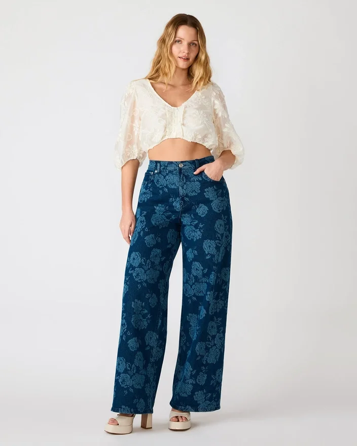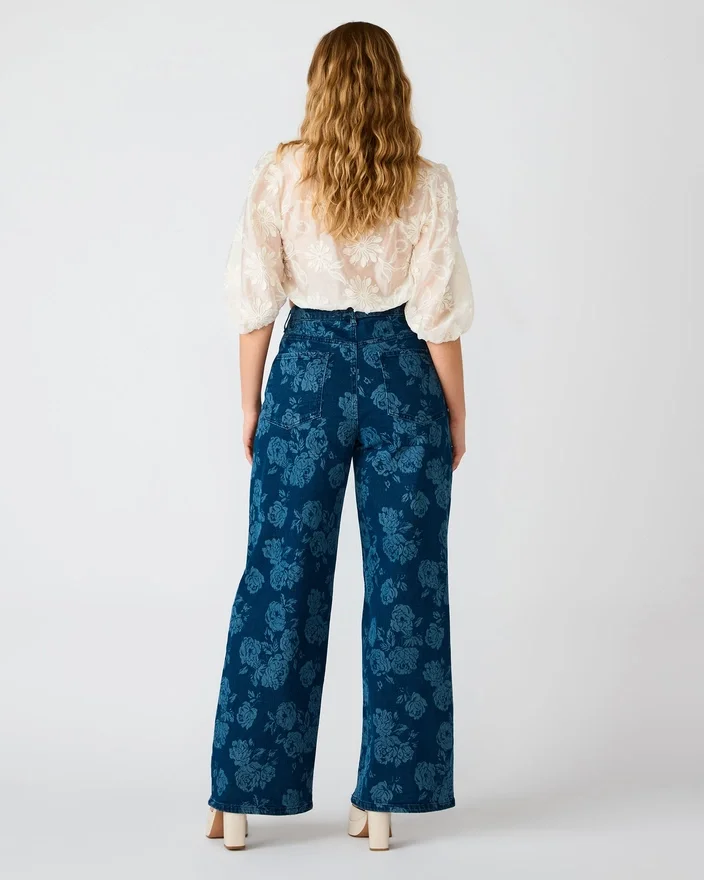 Jaxon Jean Rose Frost kombinerer en moderne silhuett med tidløs appell. Disse jeansene med vid benpassform har et elegant blomstermønster med roser som gir et visuelt løft til din daglige garderobe. De er designet med praktisk funksjonalitet og har to lommer foran og to lommer bak for praktisk oppbevaring. Den avslappede, vide passformen gir god bevegelsesfrihet samtidig som den opprettholder et elegant utseende, noe som gjør disse jeansene allsidige nok til både fritidsutflukter og mer formelle anledninger. Et sofistikert valg for deg som søker stil uten kompromisser.