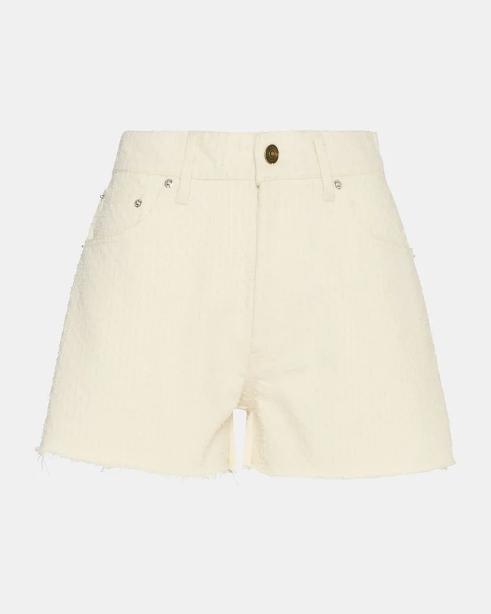 Disse Lilien Short Natural Denim-underdelene i strukturert denim kombinerer klassisk design med moderne praktisk funksjonalitet. Denimstoffet har en raffinert tekstur som gir et interessant utseende, mens de strategisk plasserte lommene – to foran og to bak – gir ekte funksjonalitet. Det doble lukkesystemet med glidelås og knapp gir sikker lukking og lang holdbarhet. Et fagmessig designet plagg som forankrer enhver garderobe for fritid med diskret raffinement.