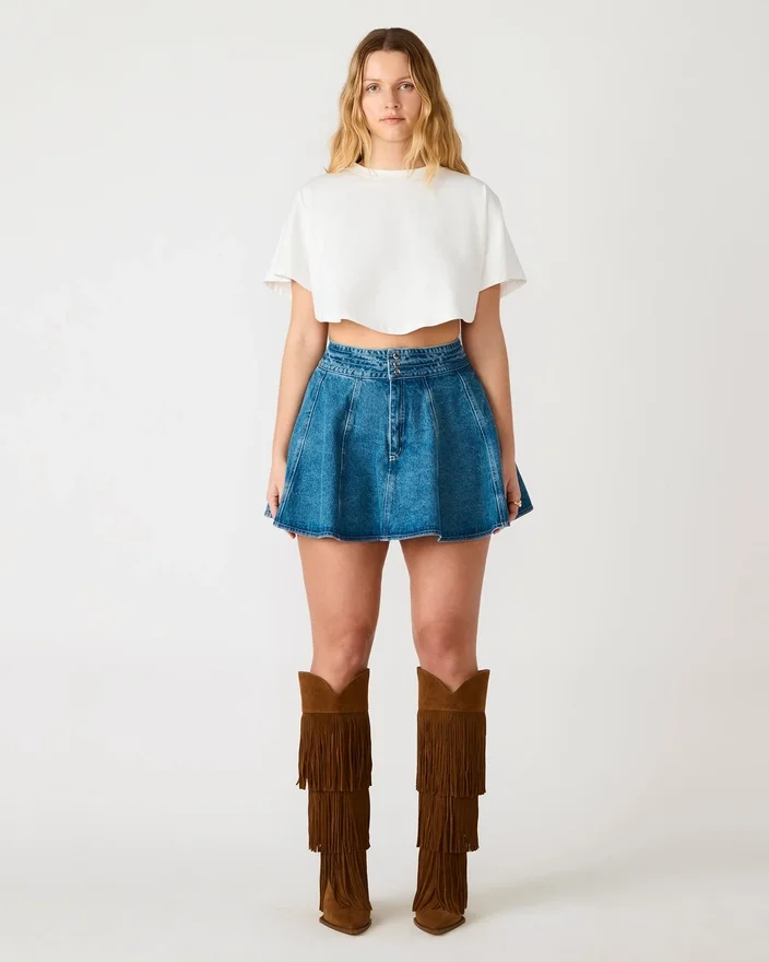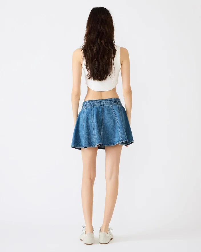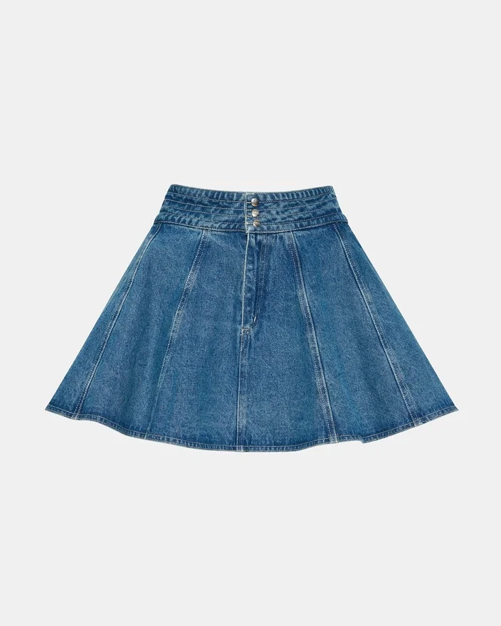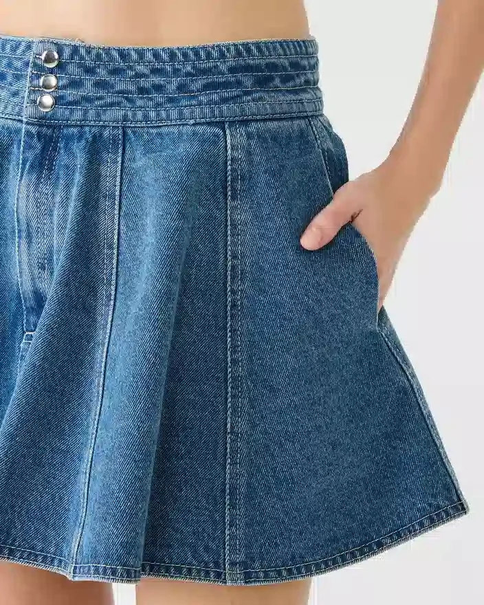 Lilliany-skjørtet Aruba Blue byr på moderne stil med praktiske designelementer. Dette miniskjørtet er laget i stiv denim og har raffinerte plisseringer som skaper bevegelse og visuelt interesse. Funksjonelle lommer foran gir praktisk bruk i hverdagen, mens knappelukningen sikrer en god passform. Skjørtet er allsidig og kan kombineres med både basisklær og statement-plagg.