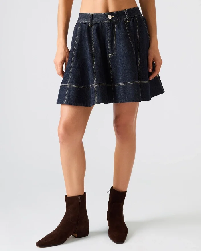 Sloan denimskjørt i fargen Ink byr på tidløs stil med praktisk funksjonalitet. Dette skjørtet er laget av kvalitetsdenim og har en sikker knapp- og glidelåslukking for en elegant passform. To funksjonelle lommer foran gir praktisk oppbevaring uten å gå på bekostning av den slanke silhuetten. Et allsidig klesplagg som enkelt kan brukes både til anledninger i fritiden og formelle anledninger.