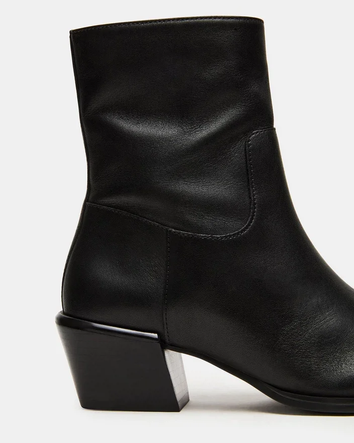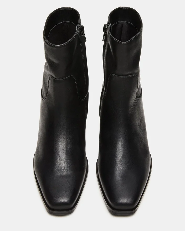 Daney svart skinn ankelstøvletter med firkantet tå kombinerer moderne design med sofistikert komfort. Laget av kvalitetsmaterialer, gir den strukturerte firkantede tåen et moderne preg samtidig som den gir god plass for bruk hele dagen. Den elegante silhuetten og det solide designet gjør denne ankelstøvlet til et allsidig valg, som sømløst løfter både antrekk fra fritiden og mer elegante antrekk med profesjonell stil og raffinert funksjonalitet.