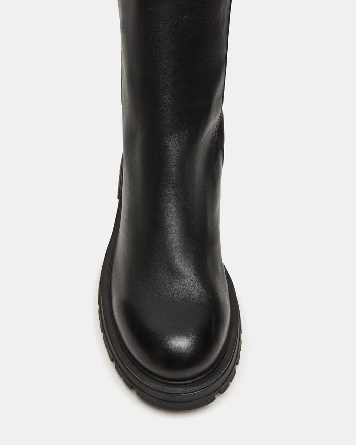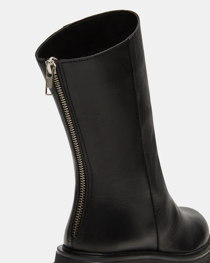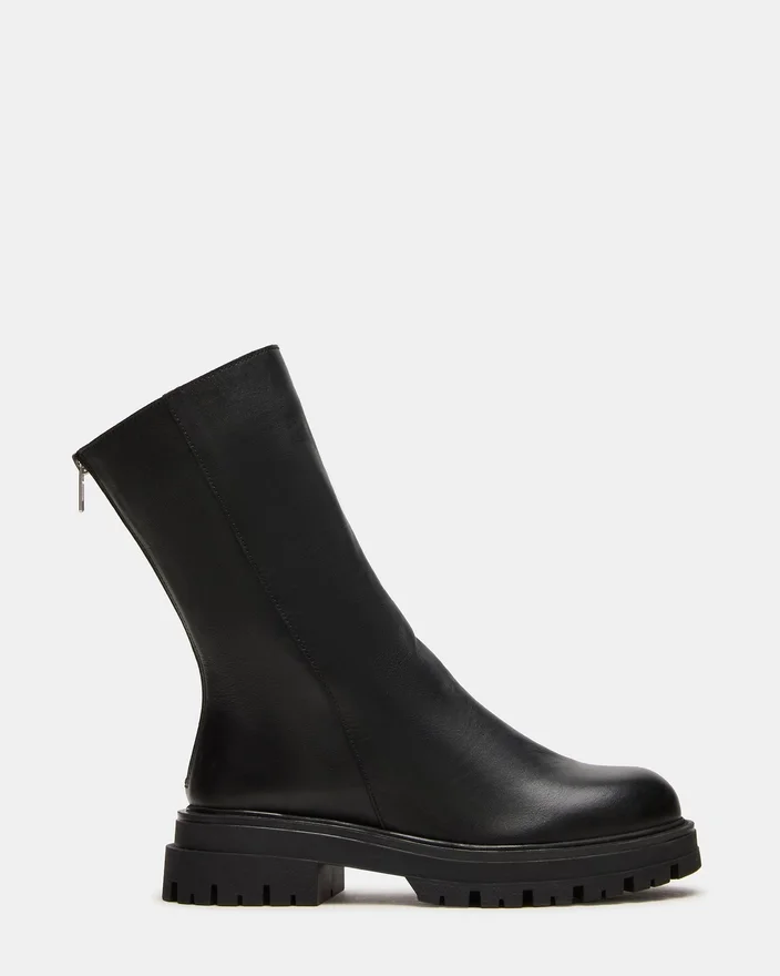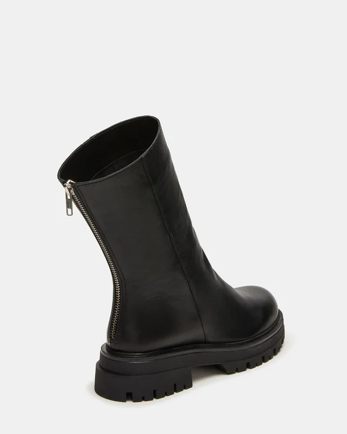 Lami Black Leather ankelstøvlet kombinerer robust stil med raffinerte detaljer. Med en solid lug-såle for bedre grep og holdbarhet har denne støvletten også en praktisk glidelås bak for enkel av- og påkledning. Laget av kvalitetsmaterialer tilbyr den både komfort og et moderne preg som passer til allsidig bruk i kjøligere årstider.5 tommer skafthøyde