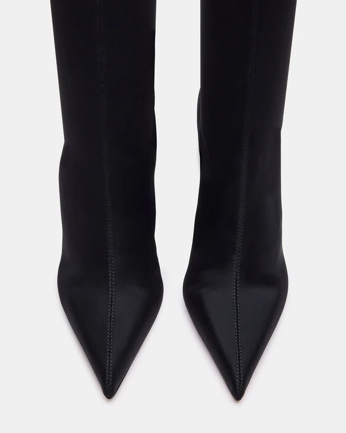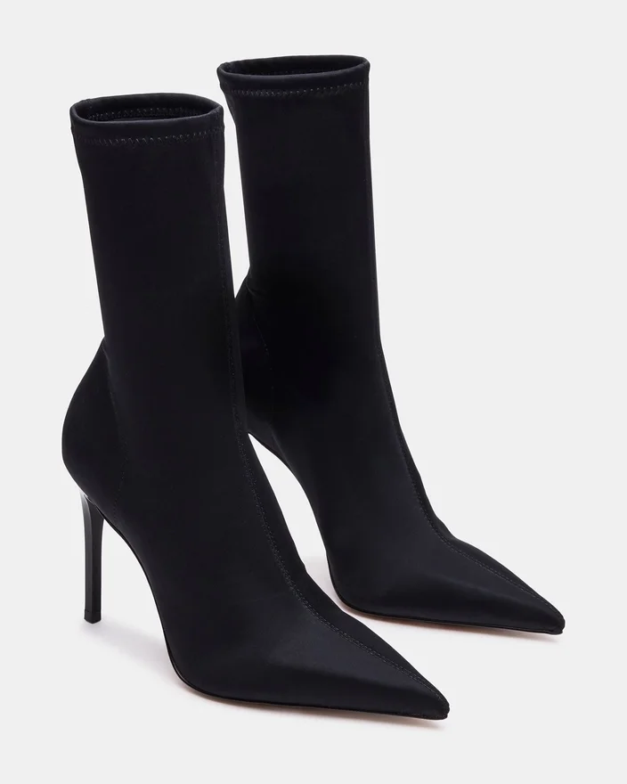 Løft stilen din med Midnite Black stilett-ankelstøvletter. Med en elegant spiss tå og en raffinert ankelstøvletter-silhuett gir dette designet et sofistikert preg som er perfekt for både dag- og kveldsbruk. Den slanke stilett-høyhælte skoen forbedrer holdningen og gir et snev av eleganse, noe som gjør den til et uunnværlig plagg for et polert, selvsikkert utseende.