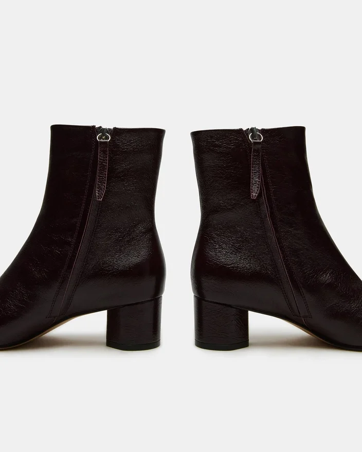 Strome ankelstøvlet har en avrundet tå og en solid blokkhelt, og kombinerer klassisk stil med pålitelig støtte. Denne støvletten er laget for både komfort og holdbarhet, og er et utmerket valg for å løfte garderoben din med et elegant, polert utseende. Den unike finishen gir en sofistikert glans, noe som gjør den allsidig for bruk fra dag til kveld.25 tommer skafthøyde