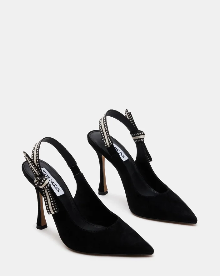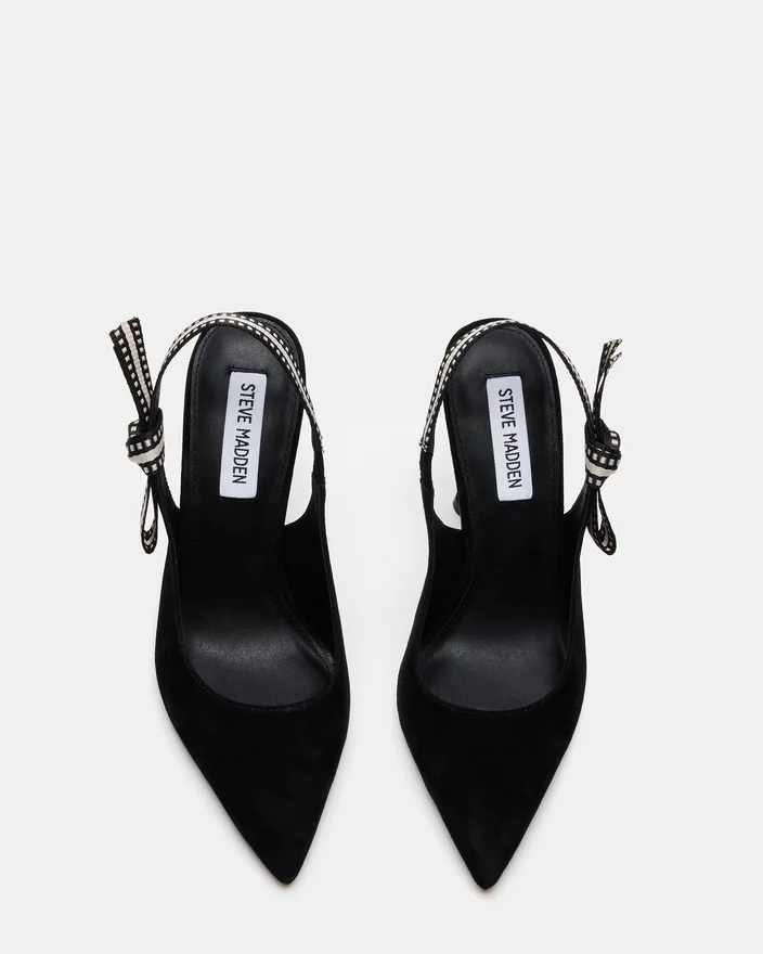 Et grosgrain-bånd vikler seg rundt slingback-stroppen på Bri spiss tå stilettpumps og avsluttes med en sløyfe som fremhever siden av skoen.