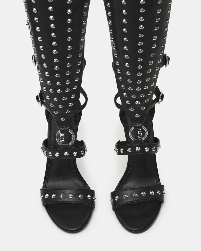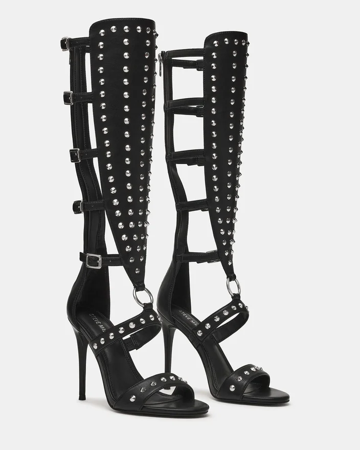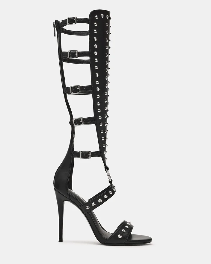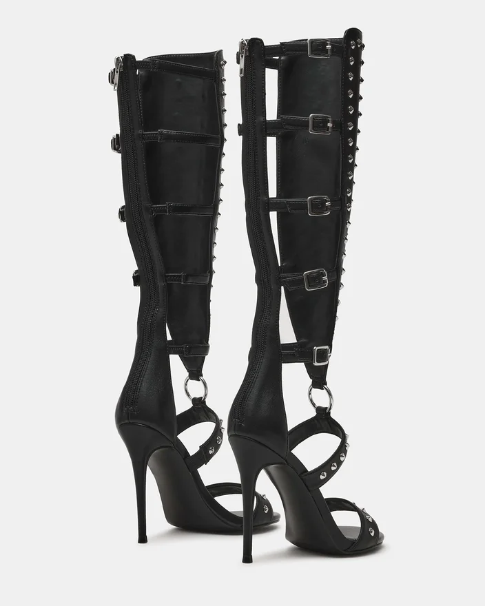Composure Black Studs gir et sofistikert preg med et elegant design med remmer. Denne stilettmodellen har spenner som gir en tilpasset passform samtidig som den løfter looken din med arkitektonisk presisjon. Detaljene gir en moderne stil til en tidløs hæl, noe som gjør den til et uunnværlig plagg for de som ønsker å tiltrekke seg oppmerksomhet gjennom raffinert stil. Perfekt for kveldsanledninger eller når du ønsker å gjøre et dristig inntrykk.