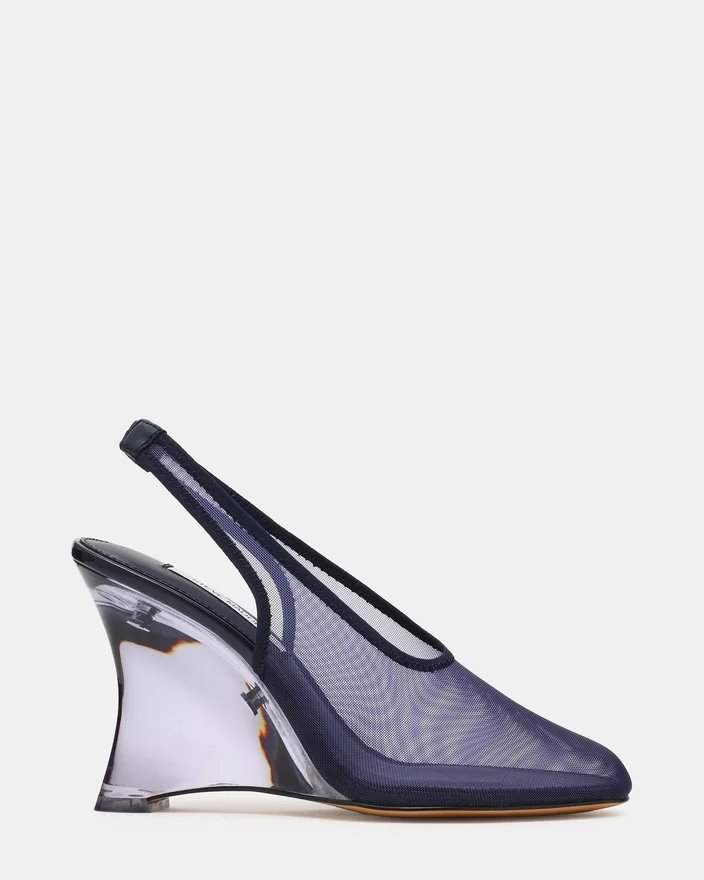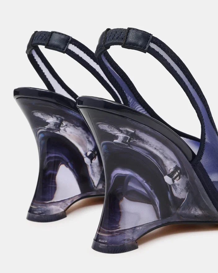Dyra Navy Multi er en sofistikert slingback-kilehæl som kombinerer moderne design med praktisk eleganse. Mesh-materialet skaper en luftig, moderne silhuett, mens kilehælen gir komfortabel støtte og stabilitet hele dagen. Slingback-stroppen sikrer en sikker passform, noe som gjør denne allsidige modellen perfekt for både profesjonelle og anledninger i fritiden.