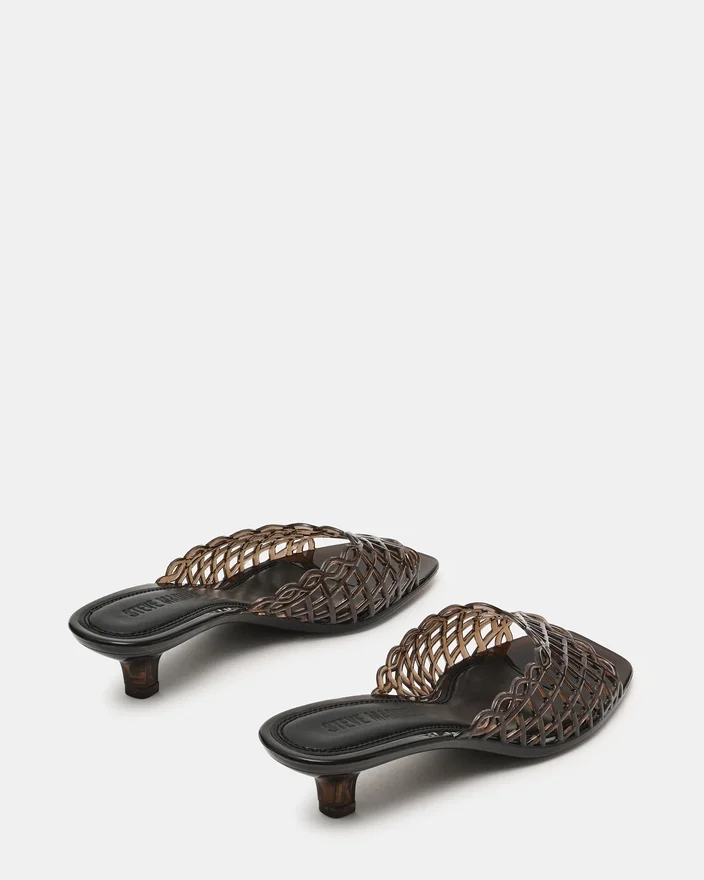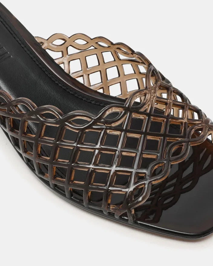 Ginger Smoke har et vevd gitterdesign på remmene, som gir en raffinert og sofistikert silhuett og en praktisk lav hæl. Den strukturerte tåformen gir en moderne estetikk samtidig som den opprettholder komforten for bruk hele dagen. Den delikate hælhøyden gir en subtil løft uten å gå på bekostning av gangkomforten, noe som gjør den til et ideelt valg for både profesjonelle og anledninger i fritiden. Et allsidig must-have som passer perfekt til hele garderoben din.
