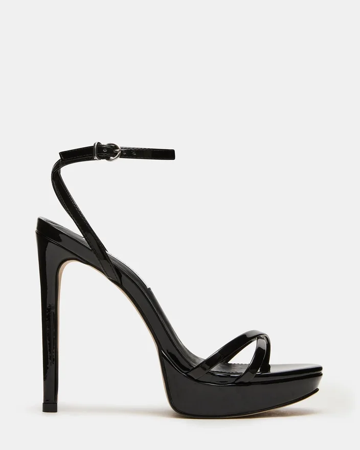 Med et elegant kryssdesign og stilett-hæl løfter Juni Black Patent ethvert antrekk. Ankelstroppen gir stil og støtte, noe som gjør den perfekt for både formelle anledninger og kvelder på byen. Denne hælen er det perfekte tilskuddet til enhver garderobe.