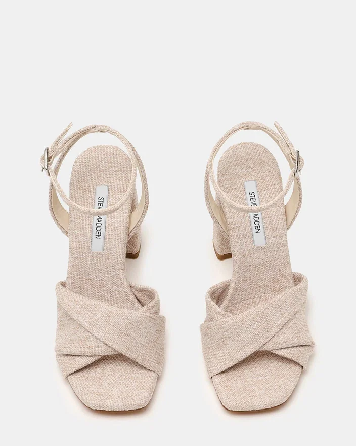 Mandy Natural Linen gir en raffinert versjon av hverdagslig eleganse. Denne hælen er designet med en støttende blokkhæl og en skarp, firkantet tå, og tilbyr både stabilitet og moderne appell. En justerbar ankelrem sikrer en sikker og komfortabel passform, mens detaljene med kryssende stropper gir dybde og en flatterende finish.