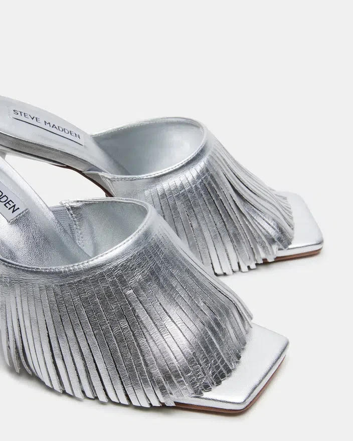 Morina Mule Heel er fagmessig laget med en elegant firkantet tå og stilett-hæl, og gir et sofistikert preg til ethvert antrekk. Den åpne tåen og frynsedesignet gir en unik stil, noe som gjør den til et allsidig og elegant tilskudd til garderoben din.