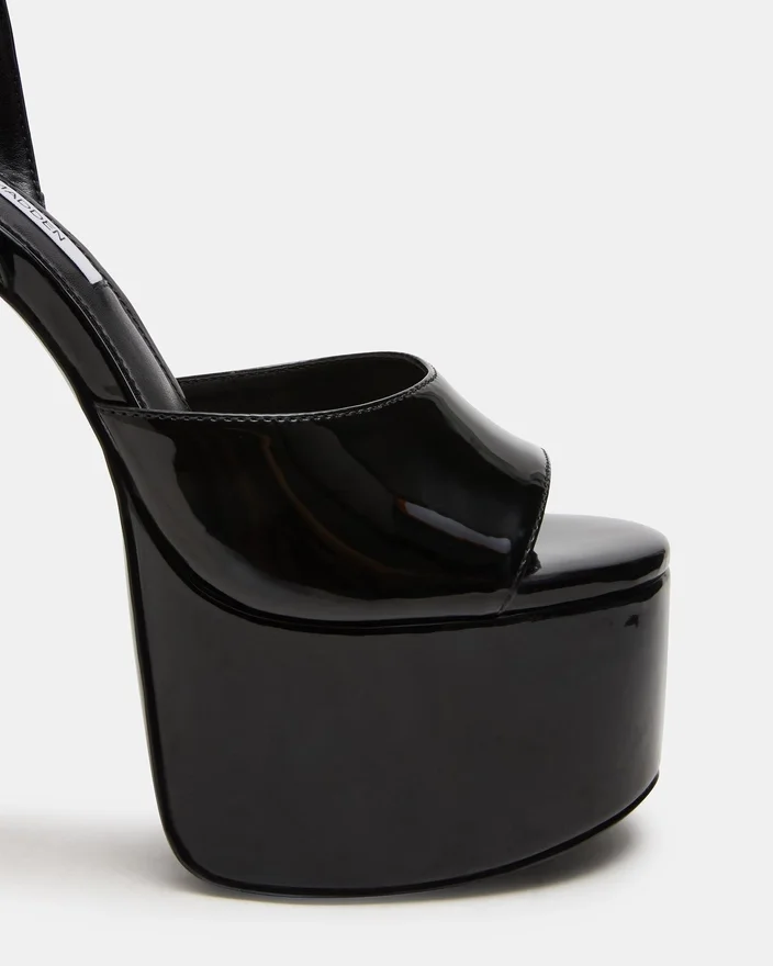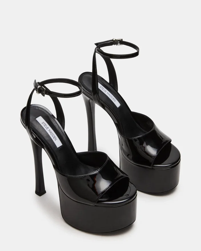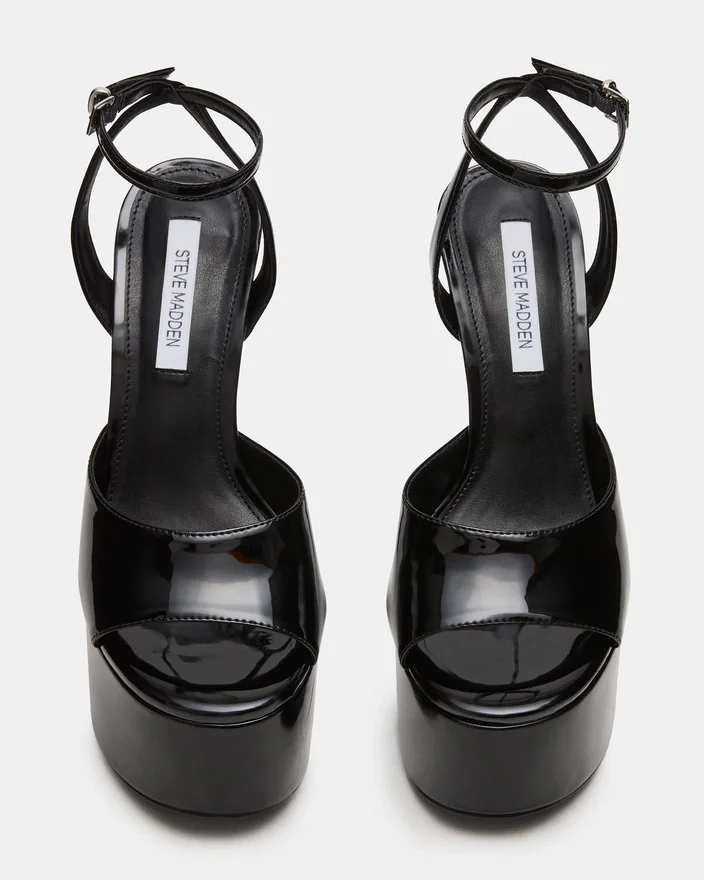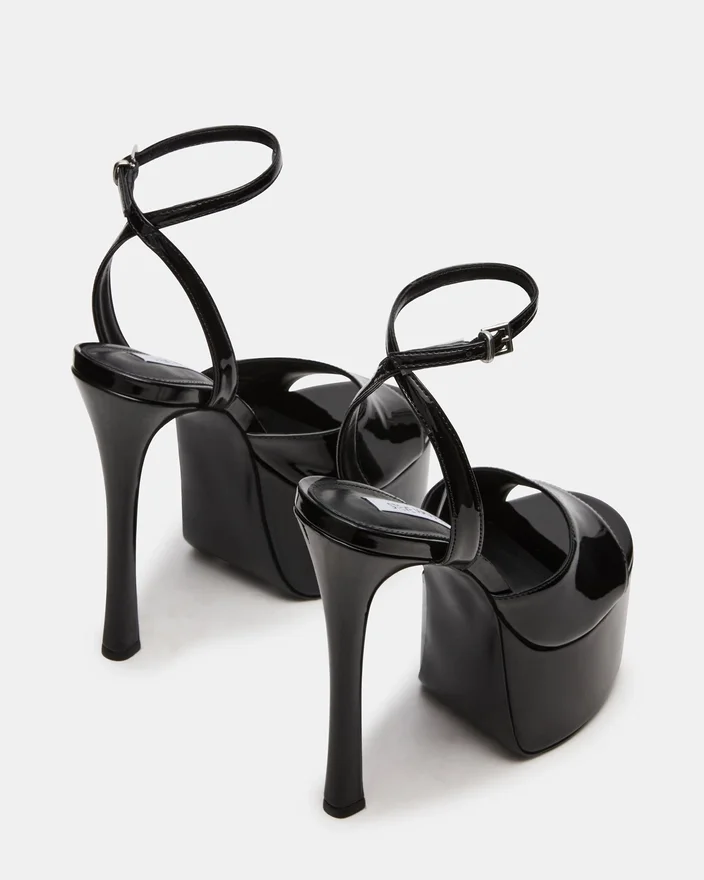 Olyssia Black byr på sofistikert eleganse med sin elegante stilett-hæl og sikre ankelremdesign, og tilbyr både raffinert estetikk og praktisk stabilitet. Denne plattformsilhuetten løfter skrittene dine, mens den strukturerte remmen sikrer en trygg og sikker passform gjennom hele dagen.