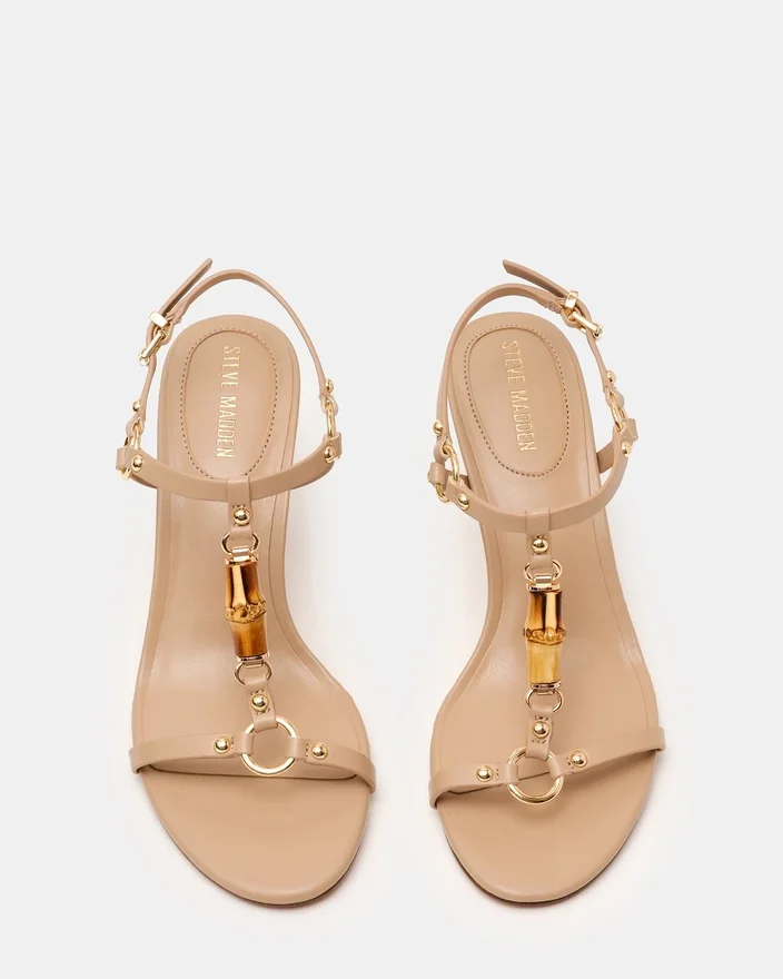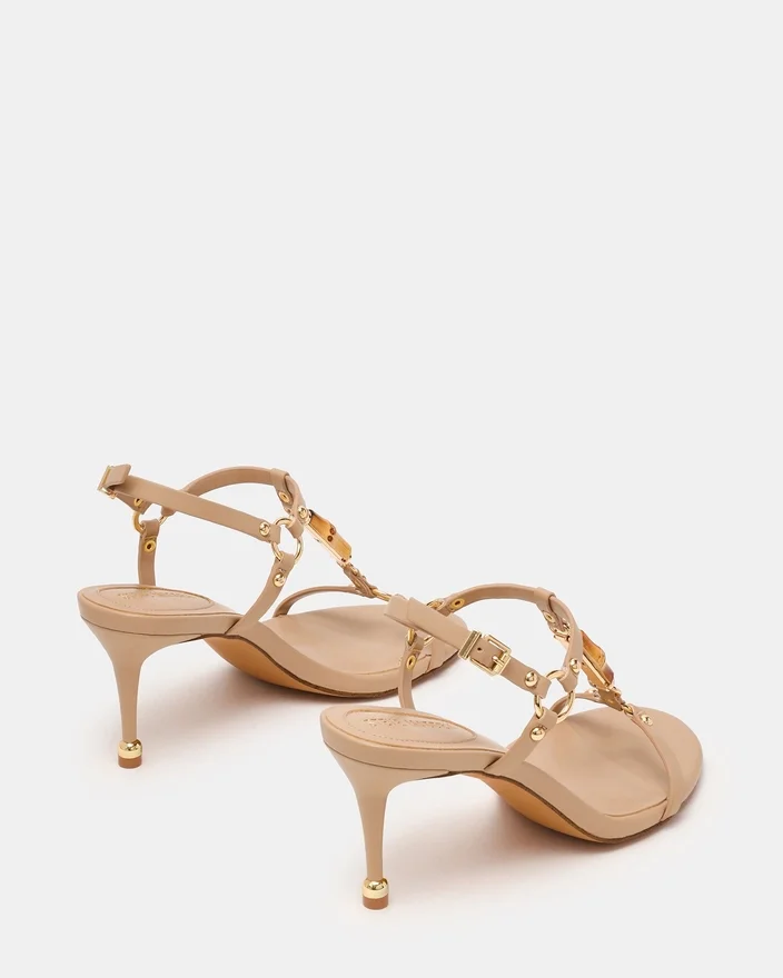Ronda Taupe kombinerer diskret eleganse med iøynefallende detaljer. Denne modellen har en delikat bambusutsmykning kombinert med skinnende gullakenter og strategisk plasserte nitter som gir et edgy preg. Den strukturerte hælen gir både høyde og stabilitet, noe som gjør den perfekt for overgangen fra dag til kveld. Et allsidig plagg som balanserer raffinement med moderne holdning.