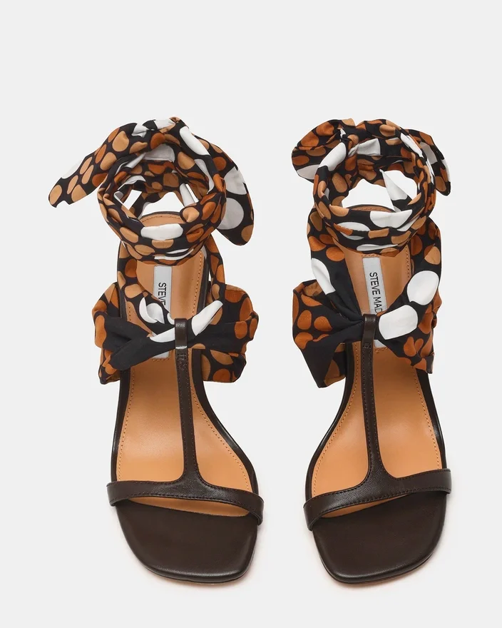 Oppgrader skosamlingen din med Sera Brown Multi. Den iøynefallende høyhælte skoen har en moderne silhuett med firkantet tå kombinert med en komfortabel kilehæl som gjør skoen behagelig å ha på hele dagen. De karakteristiske båndene rundt skaftet gir et lekent og trendy preg som skiller stilen fra mengden. Designet er perfekt for overgangen fra fritidsutflukter til mer formelle anledninger, og kombinerer moderne stil med praktisk komfort.