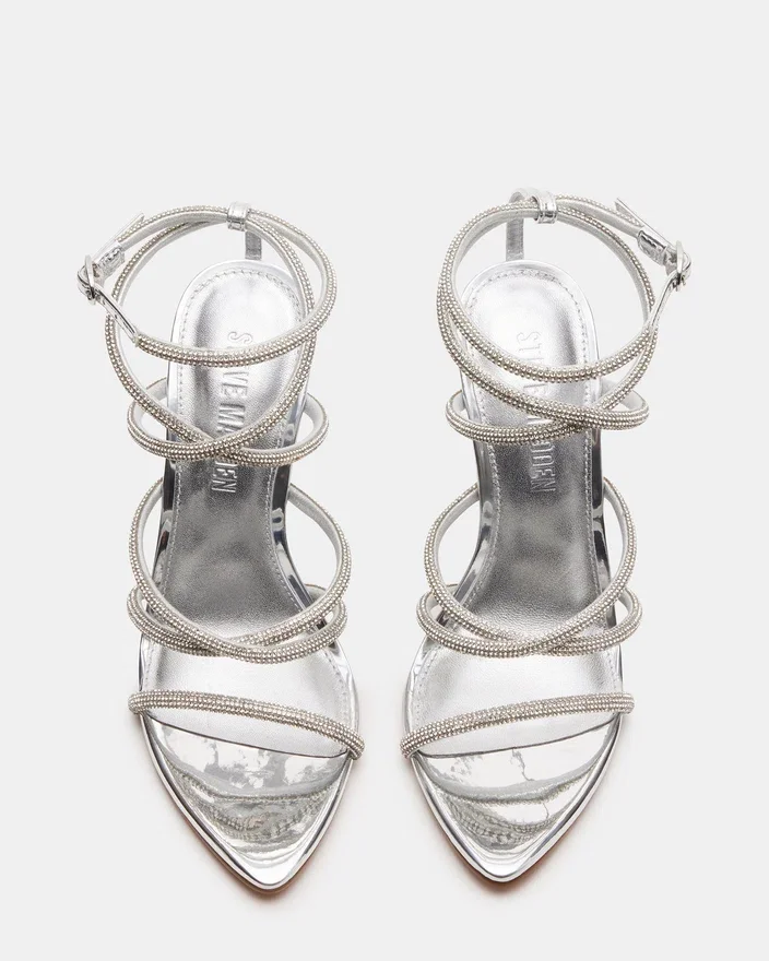 Vi presenterer Sky, den ultimate kombinasjonen av eleganse og femininitet. Disse høyhælte skoene med remmer har en spiss tå for et elegant og sofistikert utseende, mens strassdekorasjonen gir et glimt av glans. Løft ethvert antrekk med disse fantastiske skoene, som er perfekte for enhver anledning.