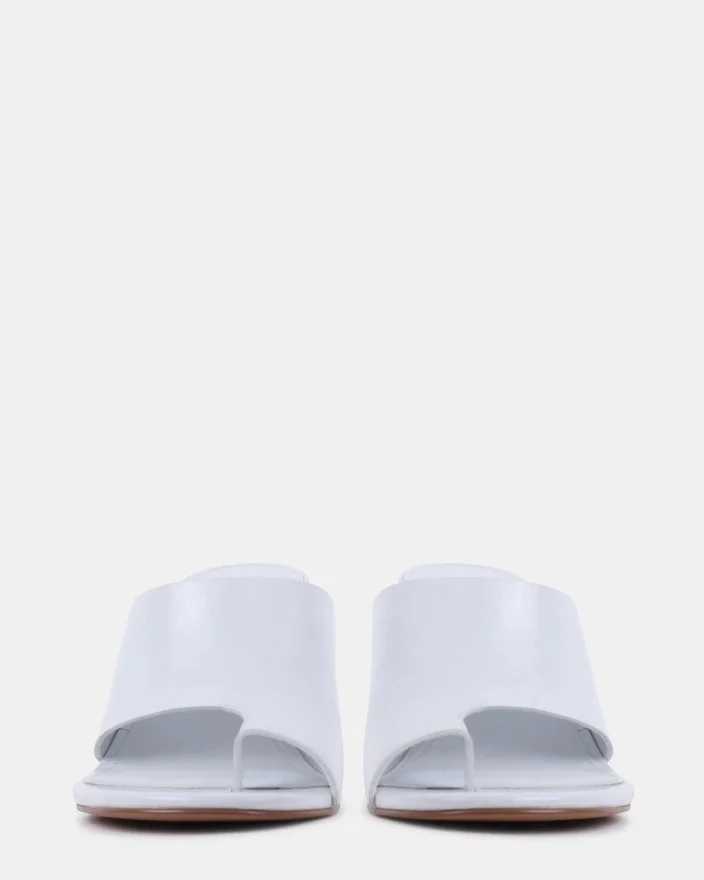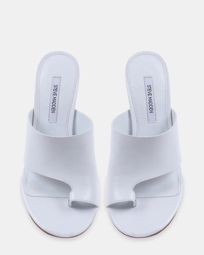 Valentin White Leather Høyhælte sko har en tidløs rund tåsilhuett med et elegant tåremdesign. Den sofistikerte stilen kombinerer klassisk appell med moderne komfort, noe som gjør den perfekt for elegant hverdagsbruk eller spesielle anledninger. Denne mule er laget med sans for detaljer og tilbyr både stil og komfort for den moderne kvinnen.