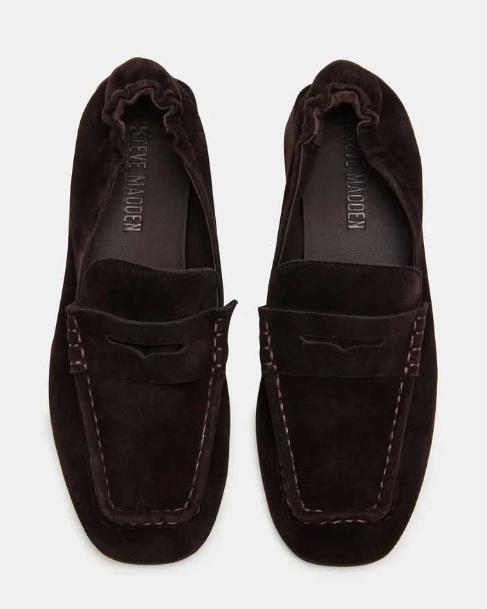 Estee Brown Suede-loaferen har et raffinert design med hæl og firkantet tå, som kombinerer moderne stil med dyktig håndverk. Den ruskede overflaten gir en subtil tekstur, mens den strukturerte hælen gir både eleganse og støtte. Denne loaferen er ideell for profesjonelle som ønsker en sofistikert, men komfortabel sko som gir ethvert antrekk et moderne preg.