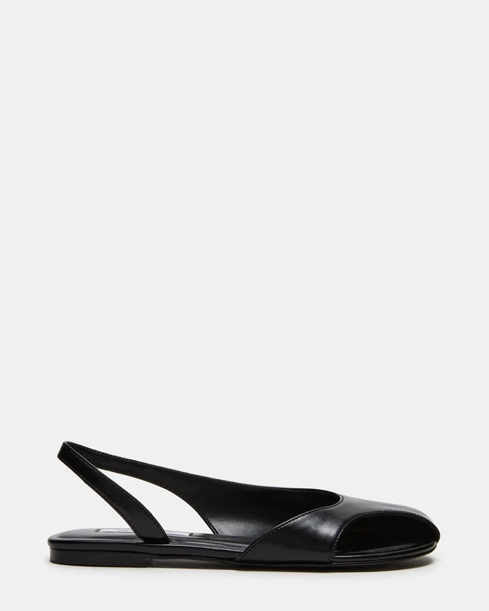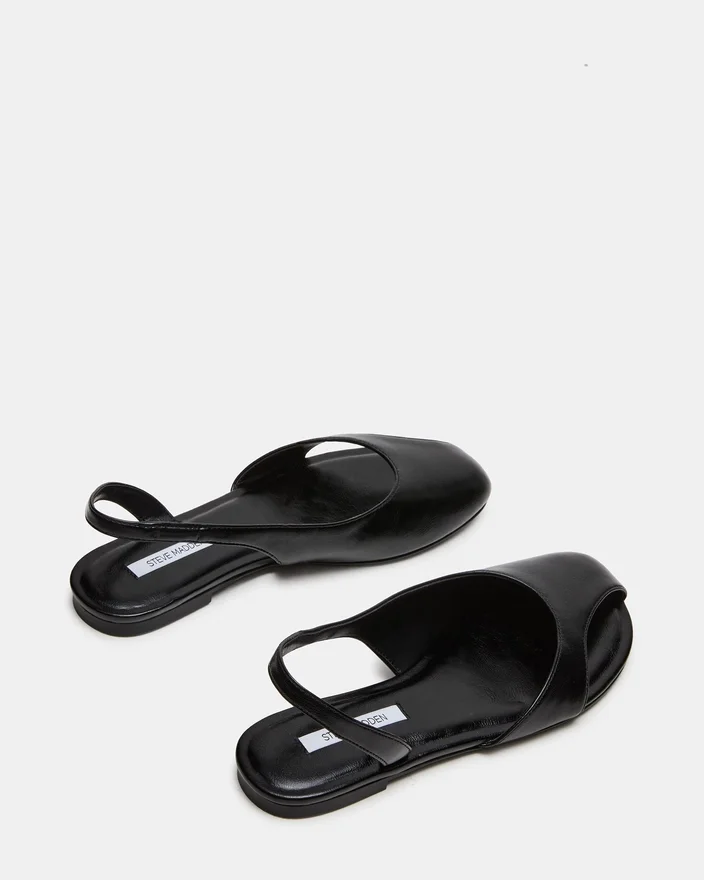 Zest Black kombinerer moderne design med hverdagsbruk. Denne flate skoen har en slingback-rem for sikker passform og en rund tå for komfort. Det karakteristiske utskjæringsdesignet gir visuell interesse samtidig som skoens raffinerte silhuett opprettholdes. Perfekt for overgangen fra dag til kveld, denne allsidige stilen passer like godt til uformelle som til elegante antrekk.
