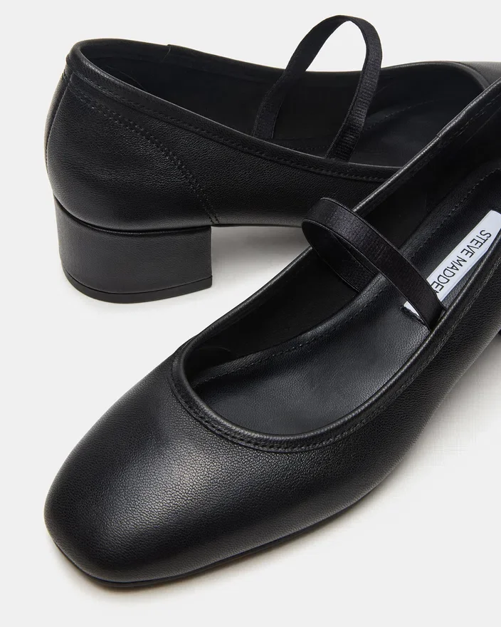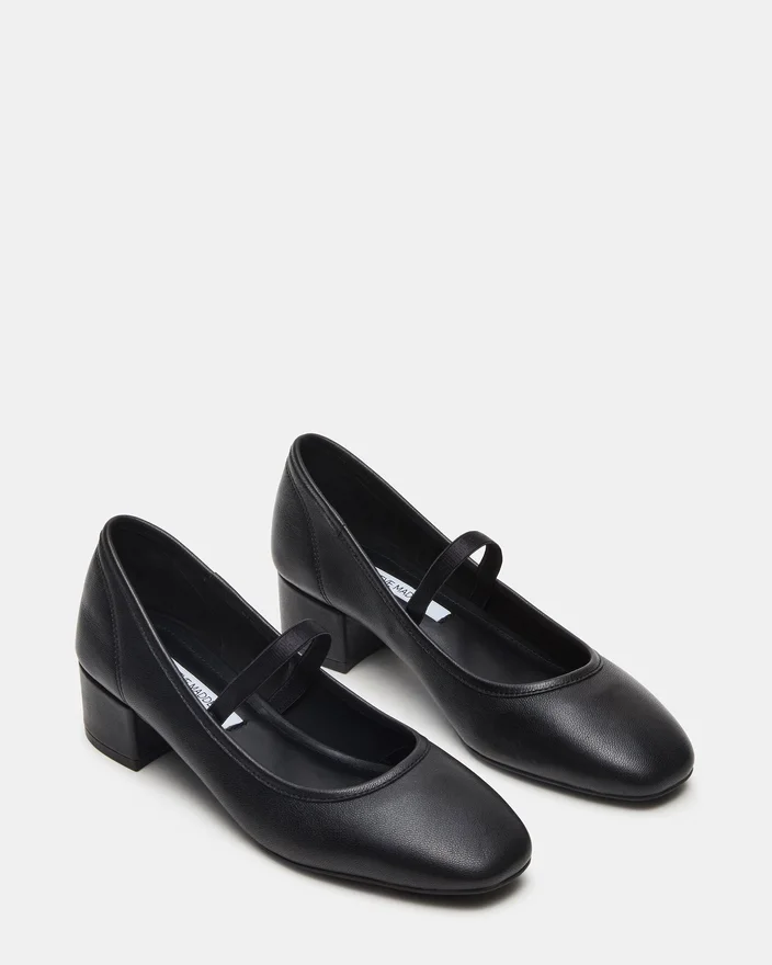 Mural svart skinn kombinerer tidløs Mary Jane-stil med moderne design. Denne modellen med firkantet tå har en solid blokkhelt som gir komfort og stabilitet hele dagen, mens den klassiske Mary Jane-stroppen gir et raffinert preg. Laget av førsteklasses materialer, passer denne hælen like godt i profesjonelle sammenhenger som på helgeturer.