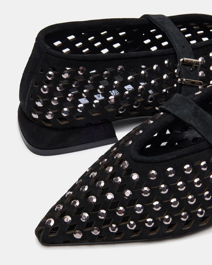Nico er en stilig Mary Jane-ballerinasko med spiss tå som kombinerer mote og funksjon. Med sitt elegante design og komfortable passform er den det perfekte valget for enhver anledning. Laget av materialer av høy kvalitet, sikrer den holdbarhet og lang levetid. Gi garderoben din eleganse med denne unike ballerinaskoen. Hvis du ligger mellom to størrelser, velg en halv størrelse større