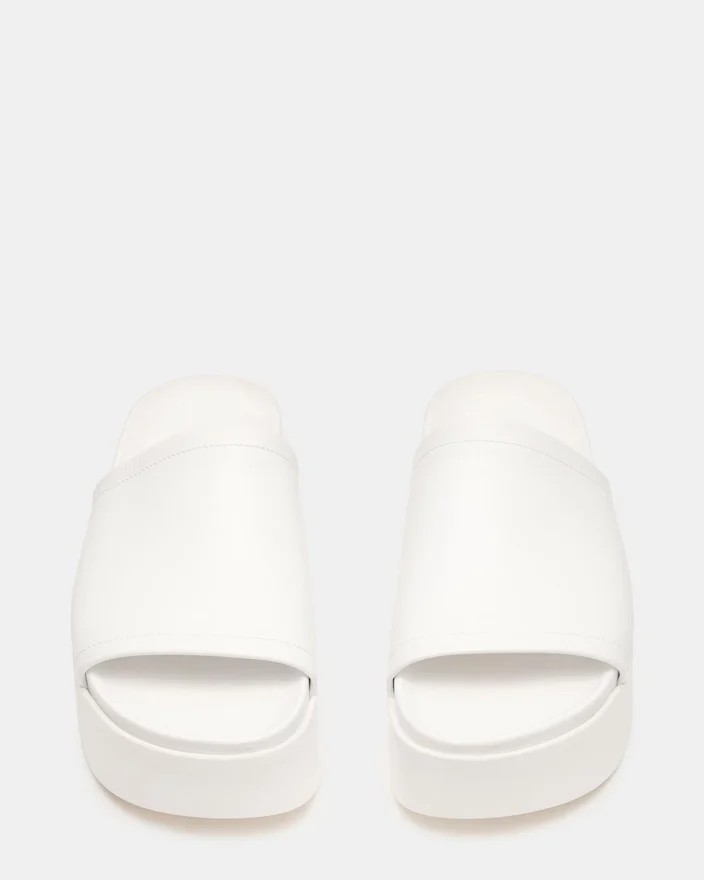 Arwen hvit skinnsandal har et flatt platåsko-design og avrundet tå for et trendy, men komfortabelt utseende. Med en tykk fotbunn tilbyr denne sandalen både stil og støtte. Løft ethvert antrekk med disse allsidige og elegante sandalene.