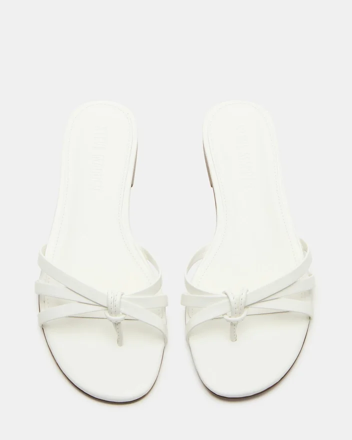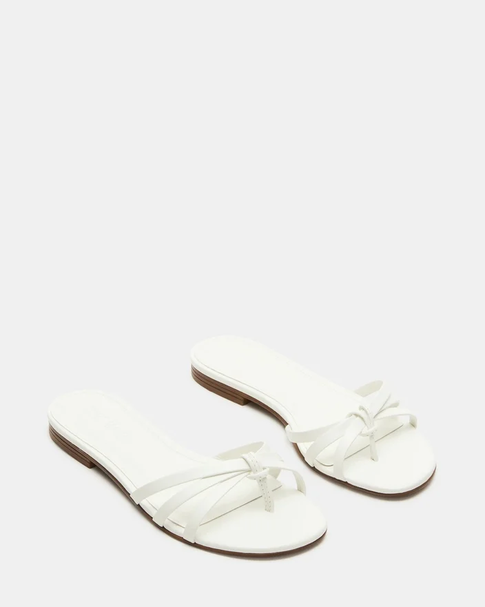 Calissi White Leather-sandaler er laget av luksuriøse materialer og har et elegant design med stropper og en komfortabel flat såle. Disse sandalene er perfekte for enhver anledning og løfter antrekket ditt uten problemer, samtidig som de gir komfort hele dagen.