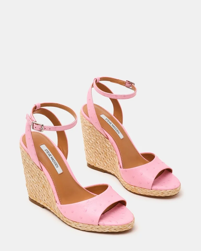 Denne Devin-espadrillesandalen i rosa strutslær kombinerer tidløs design med moderne komfort. Ankelstroppen gir sikker støtte og en elegant silhuett, mens kilehælen gir en diskret høyde og gjør sandalen behagelig å ha på hele dagen. Den er laget med sans for detaljer og passer like godt til helgeturer som til kveldsarrangementer. Den strukturerte espadrillesålen gir autentisk karakter og grep, noe som gjør denne til et allsidig must-have for enhver kresen garderobe. Et sofistikert valg som balanserer stil med praktisk eleganse.