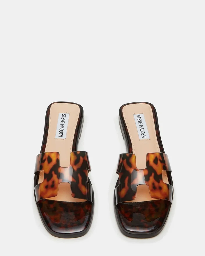 Geometriske utskjæringer på den brede, enkle stroppen på Hadyn Slide gir denne flate sandalen et friskt preg.