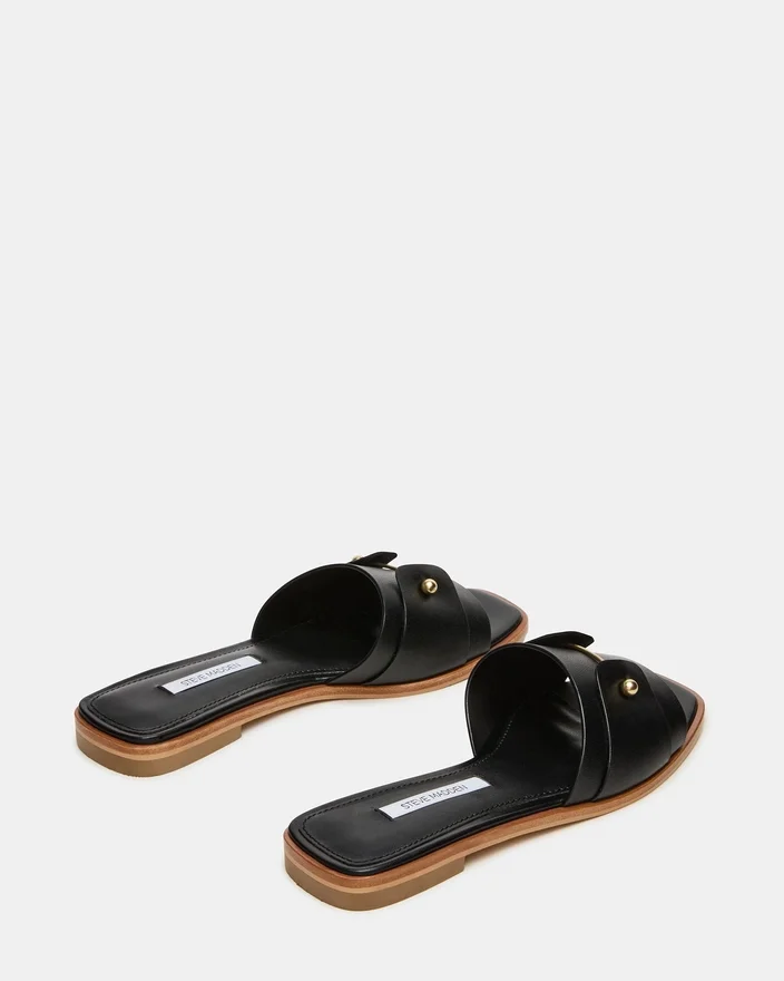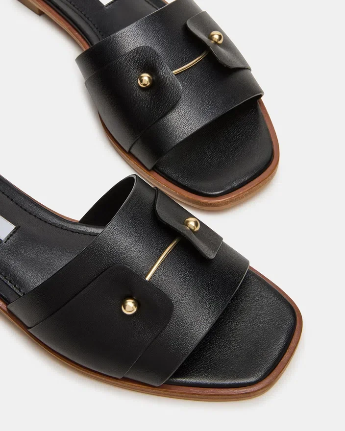 Hasten-sandaler i svart skinn gir uanstrengt eleganse med en strømlinjeformet silhuett laget av førsteklasses materialer. Delikate gull-detaljer løfter det minimalistiske designet og gir et raffinert preg som passer like godt til anledninger i fritiden som til mer formelle anledninger.