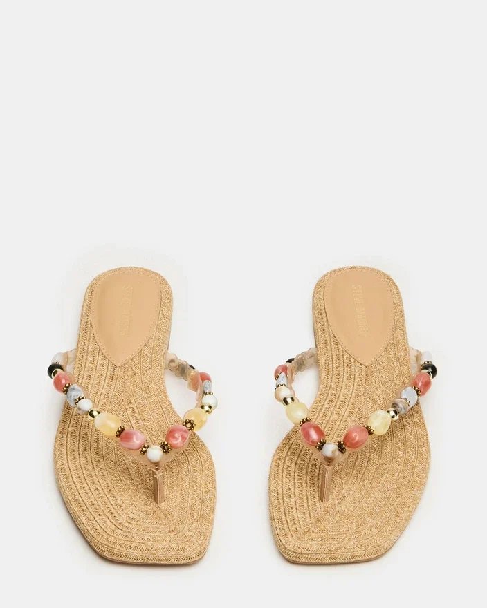 Opplev uanstrengt eleganse med Marble Natural Multi-sandalen med firkantet tå, designet for moderne raffinement. Den slanke silhuetten smigrer foten, mens tåremkonstruksjonen gir sikker og komfortabel passform for styling hele dagen. Perfekt for overgangen fra fritidsutflukter til kveldsanledninger, og dette allsidige plagget passer sømløst til alt fra kjoler til denim. Et tidløst must-have som gir både stil og praktisk bruk.