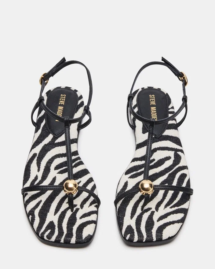 Løft looken din med Ritzy Zebra-sandalen med firkantet tå og stropper, som er profesjonelt designet for både stil og komfort. Den moderne firkantede tåen gir et sofistikert preg, mens de delikate stroppene sikrer en god passform. Denne sandalen er perfekt for å pynte opp eller gi et ekstra preg til antrekk fra fritiden, og kombinerer moderne design med allsidig brukbarhet.