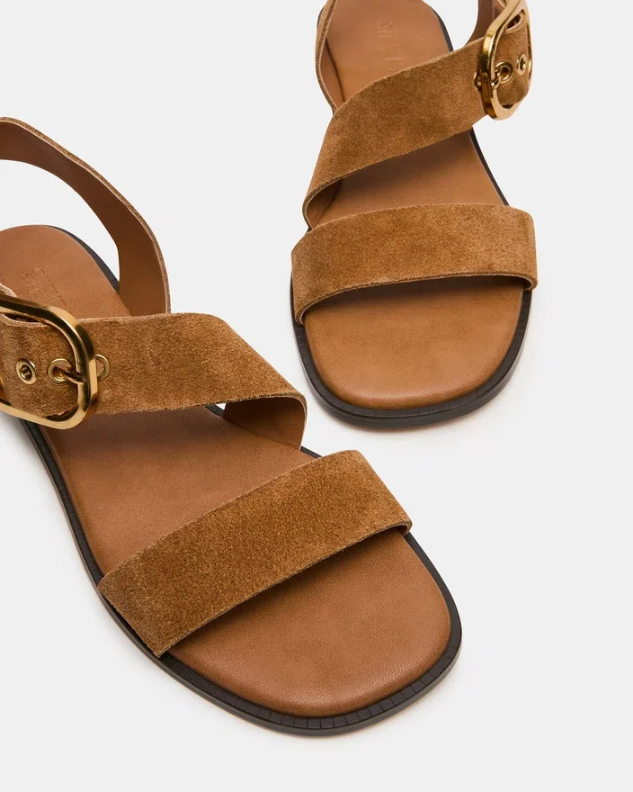 Sayer Dark Taupe Suede er en moderne sandal designet med en karakteristisk silhuett med firkantet tå og raffinerte spennedetaljer. Denne allsidige modellen er laget av førsteklasses materialer og passer like godt til uformell fritidsklær som til kveldsanledninger. Spennet gir et sofistikert preg, mens konstruksjonen sørger for komfort og en luksuriøs følelse.