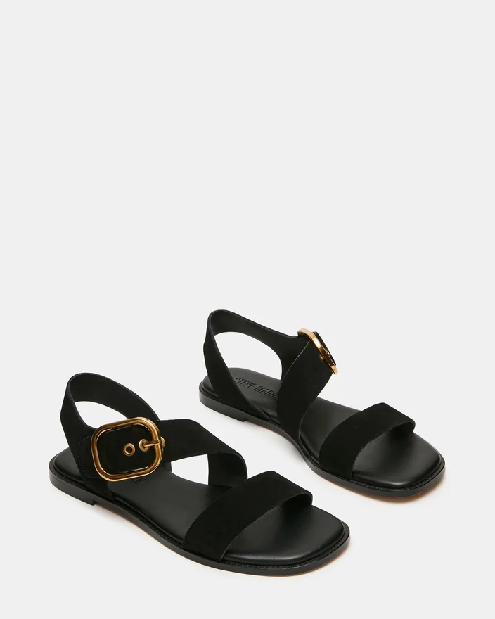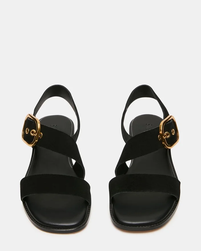 Sayer Black Suede er en moderne sandal designet med en karakteristisk firkantet tå og raffinerte spennedetaljer. Denne allsidige modellen er laget av førsteklasses materialer og passer like godt til uformell fritidsklær som til kveldsarrangementer. Spennedetaljene gir et sofistikert preg, mens konstruksjonen gir komfort og en luksuriøs følelse. Perfekt for deg som ønsker en moderne sandal som balanserer stil med hverdagsbruk.